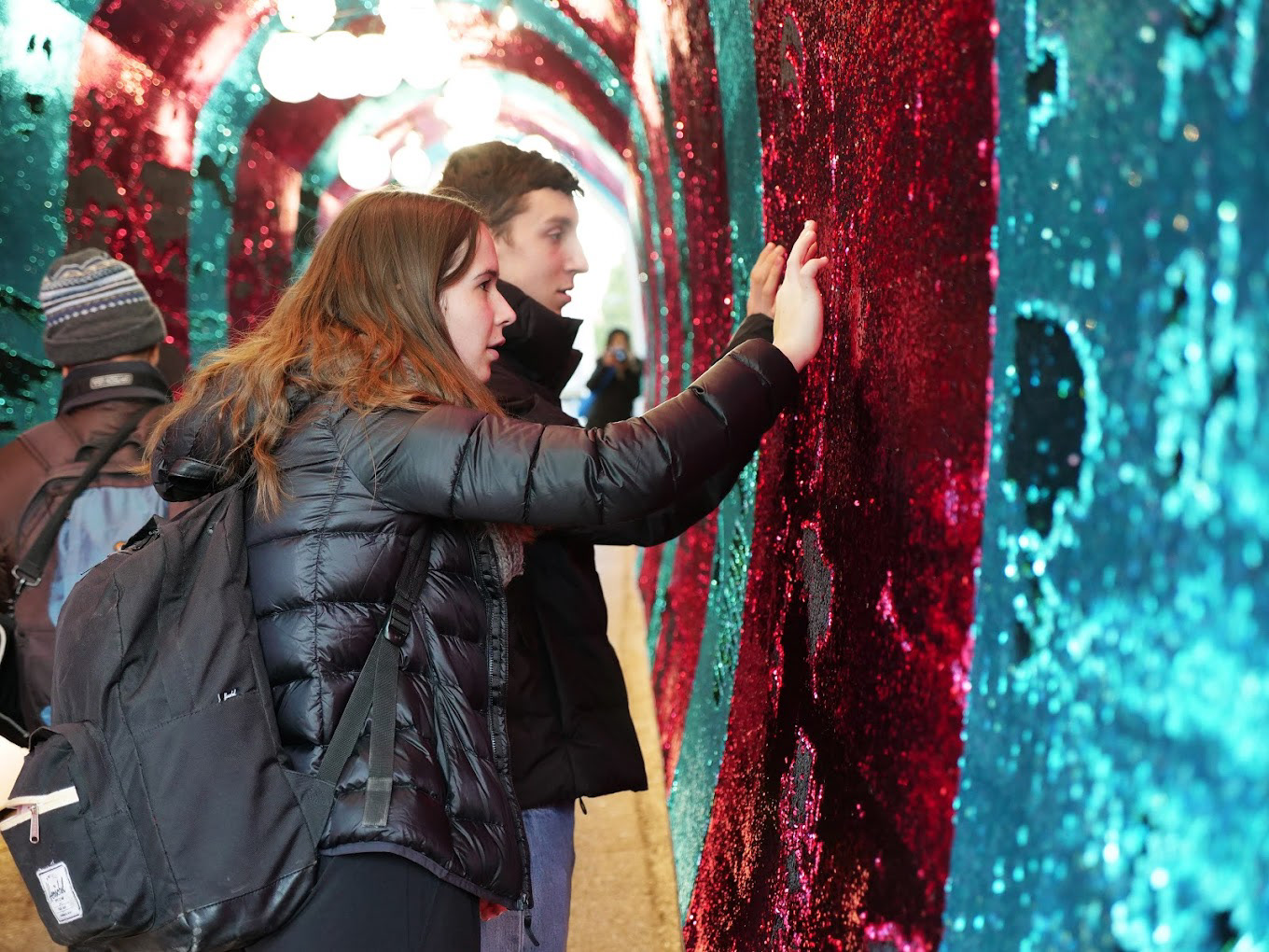 The Tunnel of Glam was created to solve this challenge - an 80-foot tunnel in a forgotten alleyway that was covered with 40 million reversible sequins. The free holiday attraction became an overnight hit, generating local media and attracting over 20,000 annual visitors. The tunnel could be used as a personal canvas by swiping your hand against the sequins, allowing for endless viral content and play for kids and kids at heart. The attraction resulted in a significant increase in local visitors and supported the neighbourhood economy.